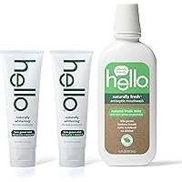 Hello Oral Care Naturally whitening fluoride toothpaste twin pack + naturally fresh antispetic mouthwash